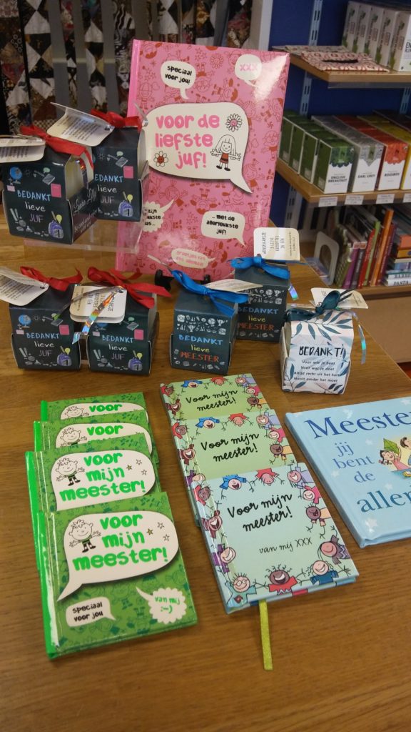 Het schooljaar loopt weer op zijn eind, wij hebben verschillende leuke kleine cadeautjes voor de meester of de juf