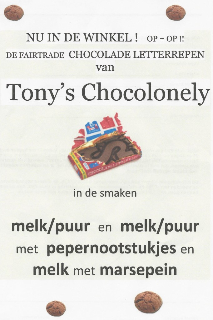Lees meernu in de winkel de fairtrade chocolade letterrepen van Tony’s Chocolonely