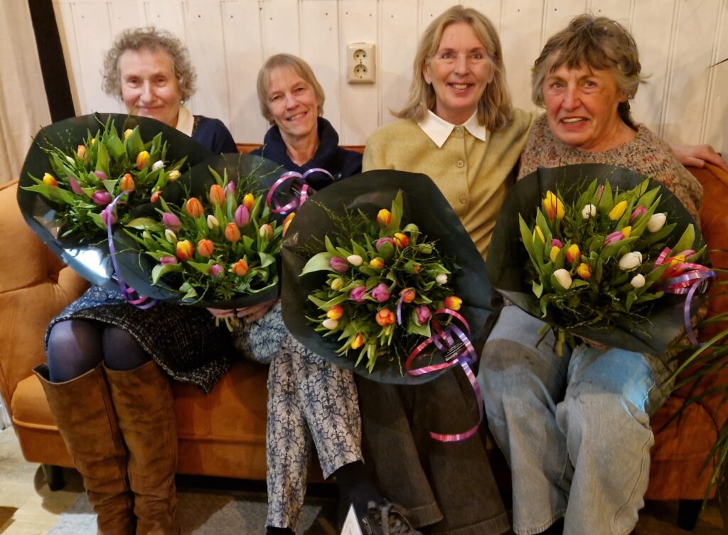 Deze vrijwilligers van de Wereldwinkel Geldermalsen zijn afgelopen week verrast met een bloemetje. Omdat zij zich al ruim 10 en 20 jaar inzetten als vrijwilliger voor de Wereldwinkel.De Wereldwinkel Geldermalsen draait al ruim 33 jaar geheel op vrijwilligers.